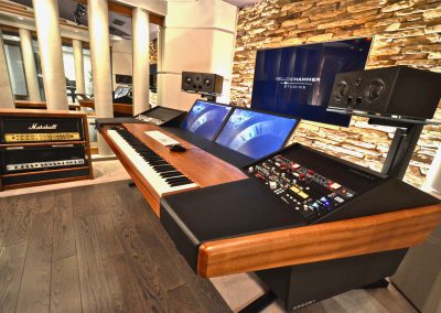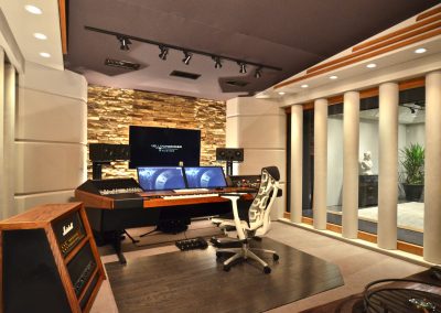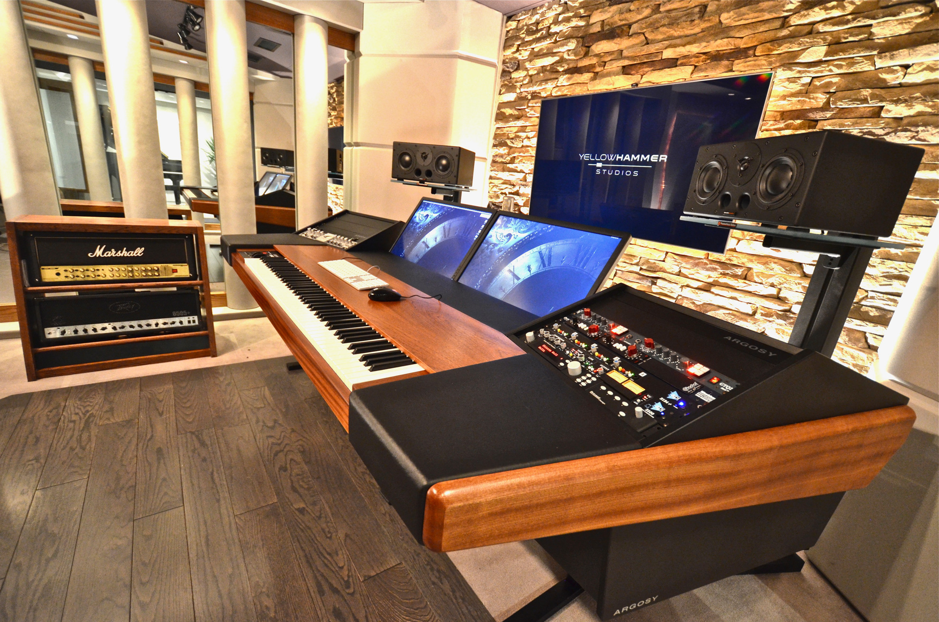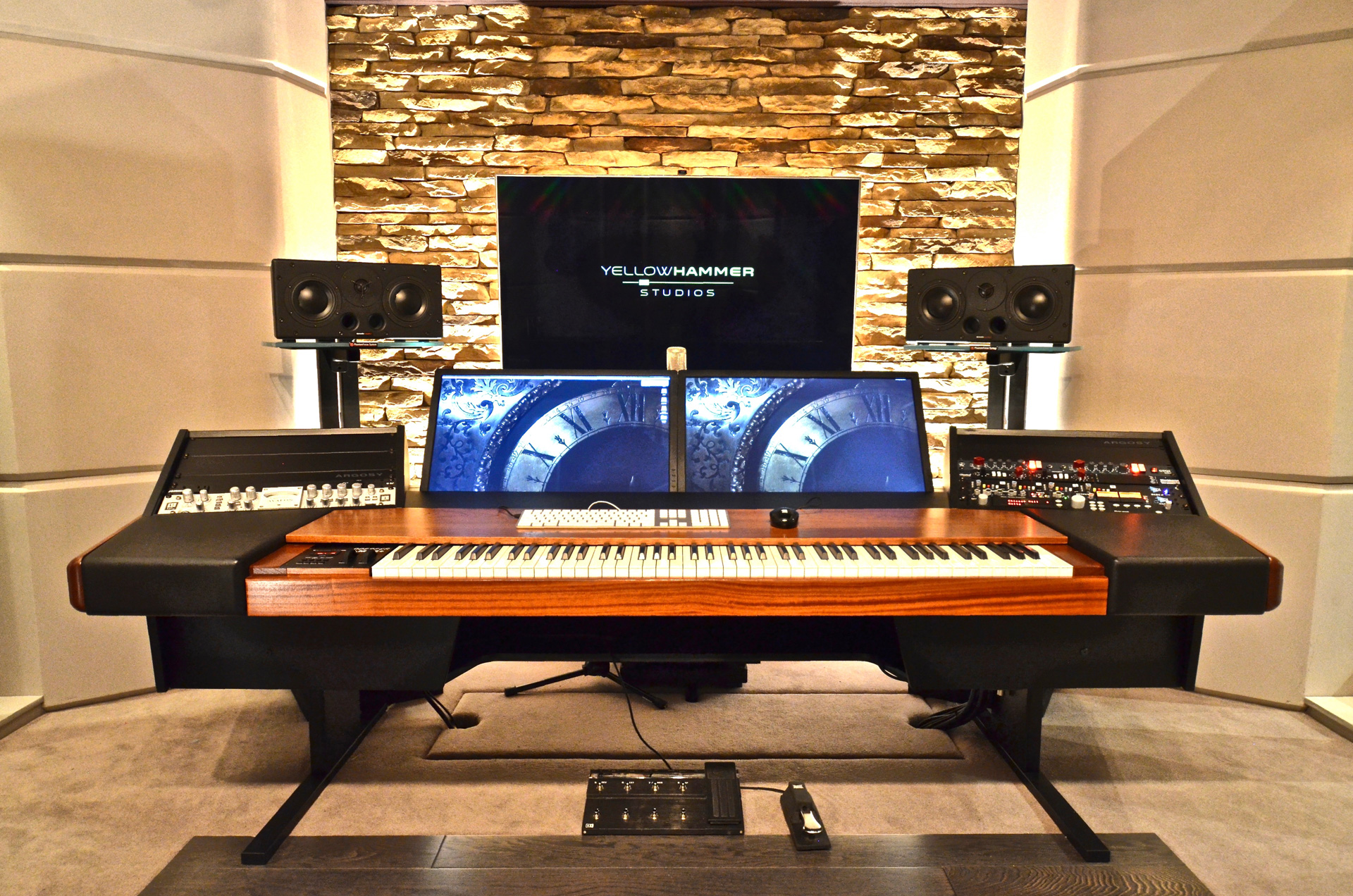 Opened in February of this year, Yellow Hammer is a 630-square-foot, full-tilt custom Carl Tatz Design studio built from the ground up for film composer Justin Miller in the back yard of his Nashville home. The studio encompasses a CTD MixRoom, piano booth, computer closet and hall-of-shame foyer. It features the PhantomFocus System driving a Dynaudio M1 monitor/Bryston 4B SST amplification combo and a custom application of the Carl Tatz Design Signature Series acoustic modules by Auralex. It also features the new Carl Tatz Edition Dual 15K-L desk by Argosy Console.