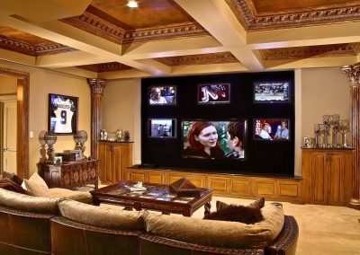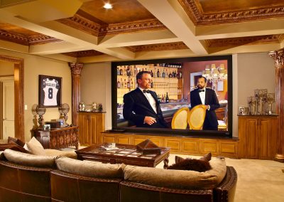 A dedicated room is the ideal choice for the client who wants the full experience of a Hollywood film in his own home. This type of screening room is structured to take full advantage of advanced audio/visual equipment. Every aspect of the room is designed and computer calculated to enhance sound and picture. For instance, modifying the room dimensions even a few inches can make dramatic sonic improvements and implementing the correct projector, size and type screen and sound system will make the difference between the winners and the also-rans.