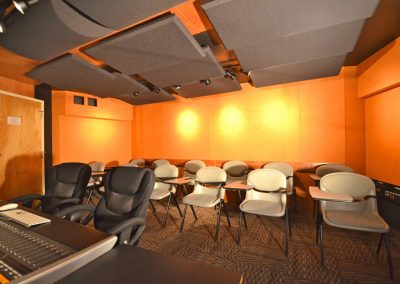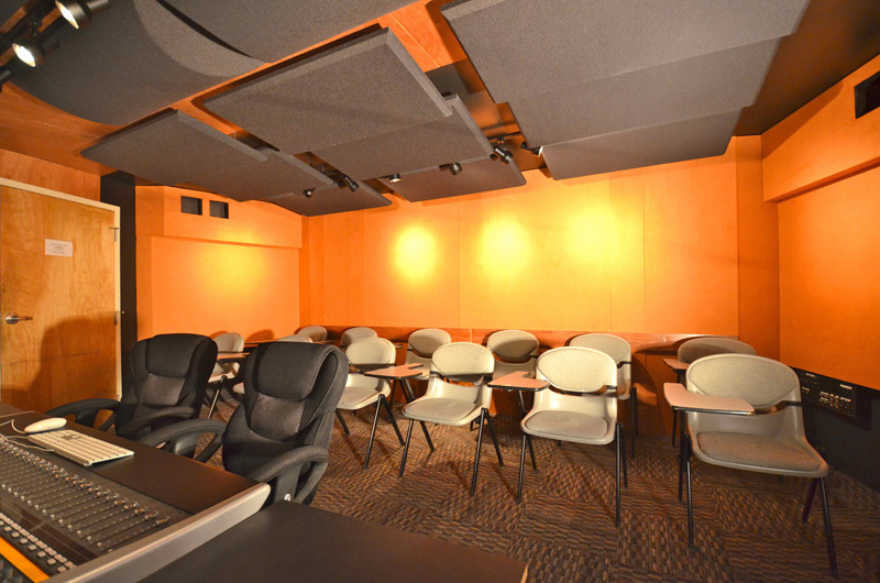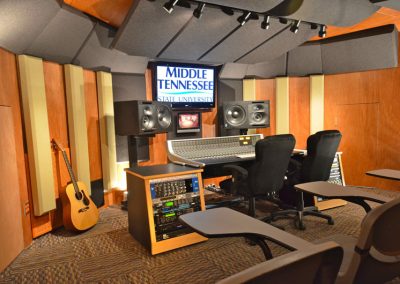 Renovation of the Middle Tennessee Slate University [rntsu.edu] Studio E control room-which is one of two “project rooms” where students traditionally begin their first recording projects-was handled by Nashville designer/acoustician Carl Tatz and features a custom application of the new Carl Tatz Design MixRoom™concept. Each of the two rooms (Studio D is the other) features the Carl Tatz Design PhantomFocus™ System monitor tuning protocol, An SSL AWS924 console, Pro 100Js HD 10 and Genelec monitoring system form the base of the equipment package. Studios D and E opened in summer 2012.