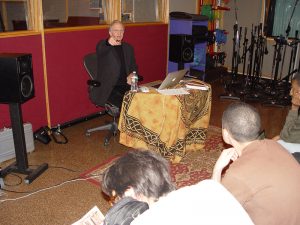 Carl Tatz lectures sudents and staff at Berklee College of Music in Boston about personal studio design and the PhantomFocus™ System