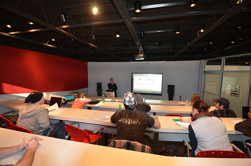 Carl Tatz lectures students and staff at SAE Nashville about personal studio design and the PhantomFocus™ System