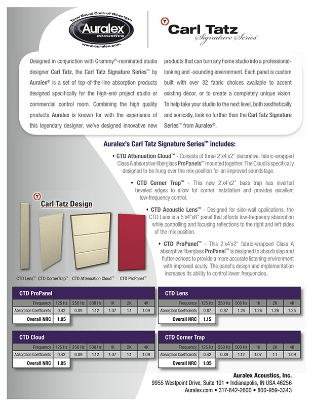 The Carl Tatz Signature Series™ control room acoustic modules by Auralex Acoustics honored by Pro Audio Review’s coveted PAR Excelence Award nomination