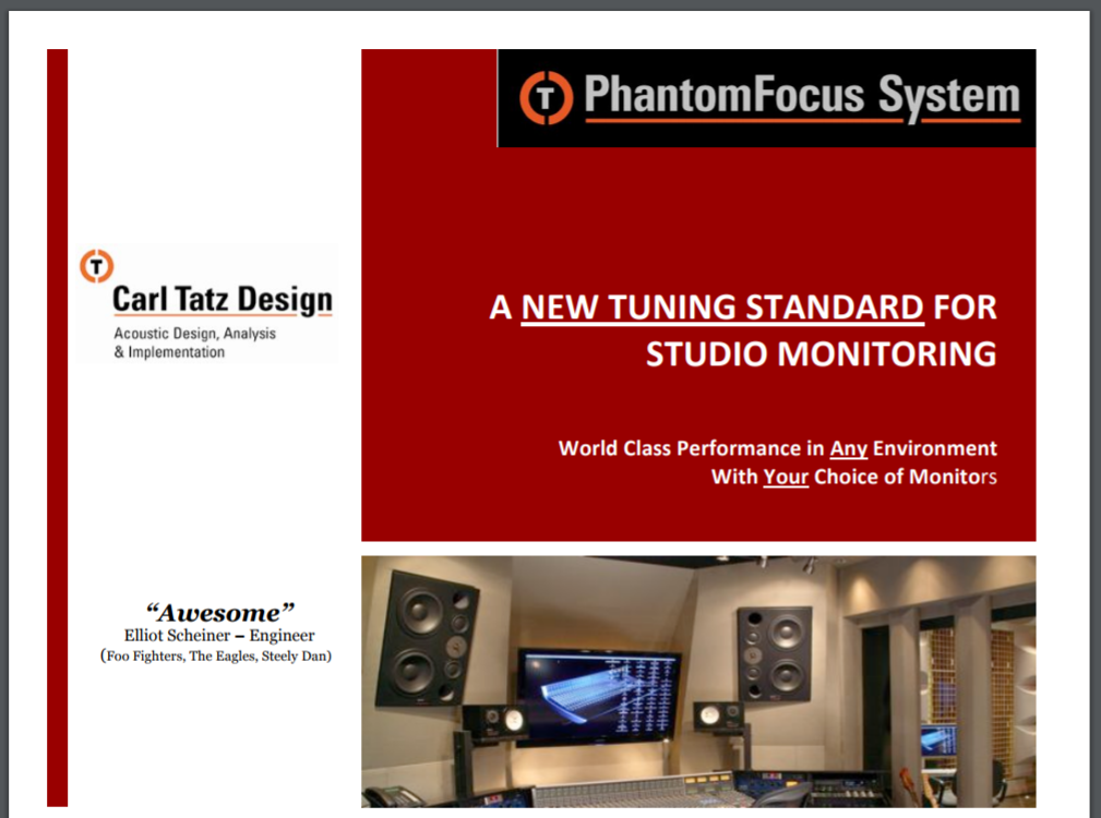 Carl Tatz Design installs the PhantomFocus™ System in existing control rooms and in all studios that are designed and built from the ground up by CTD. The result is like the aural equivalent of HD TV. Once you experience a PhantomFocus™ System , you can’t go back.