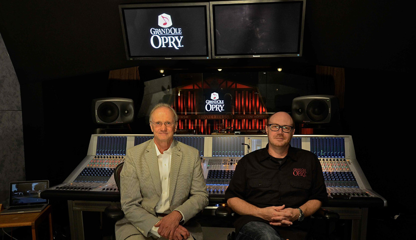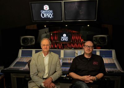 Pictured L-R: Studio designer and PhantomFocus™ System (PFS™) creator Carl Tatz and Grand Ole Opry/Ryman Auditorium Chief Broadcast Engineer King Williams at the console in the Opry control room