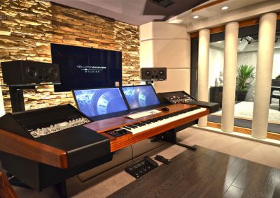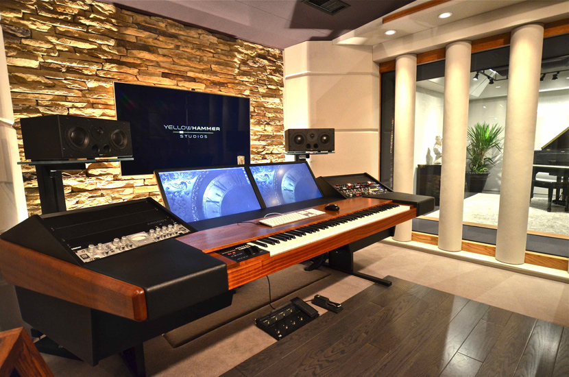 Yellow Hammer is a comprehensive custom Carl Tatz Design (CTD) studio built from the ground up for film and game-scoring composer/recording engineer Justin Ray Miller on the property of his East Nashville home. Opened in 2014, the studio encompasses a CTD MixRoom™, piano booth, restroom, computer closet and entry foyer. It features the acclaimed PhantomFocus™ System™ (PFS™) driving a Dynaudio Professional M1 monitor/Bryston 4B Pro SST Squared amplification combo that showcases the new Sound Anchor PhantomFocus™ Stand and a new custom application of the Carl Tatz Design Signature Series™ acoustic modules by Auralex – highlighted by the new Axial Mode Absorber Wall™ (AMAW)™ and the MixRoom Acoustic Lens™system. The tracking room ceiling features the new Parabolic Acoustic Room Expander (PARE)™. And the MixRoom also features a new custom Carl Tatz Edition™ Dual 15-KL800 workstation by Argosy Console.