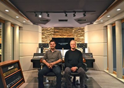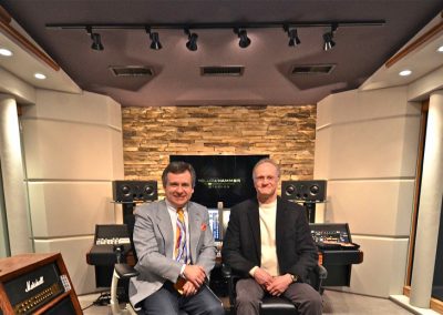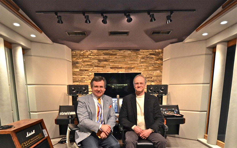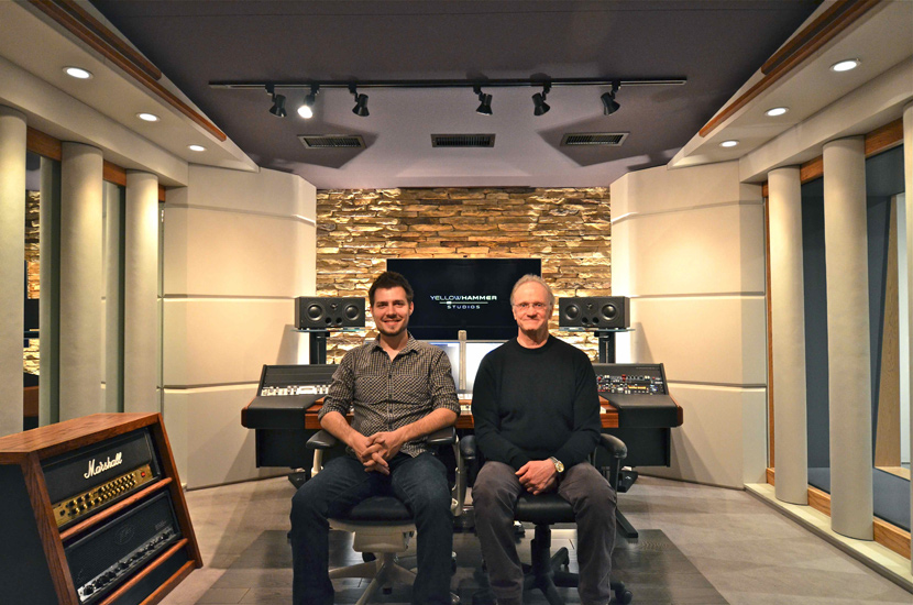 Pictured L-R: Auralex founder and president Eric Smith and studio designer Carl Tatz at the console at Yellow Hammer
