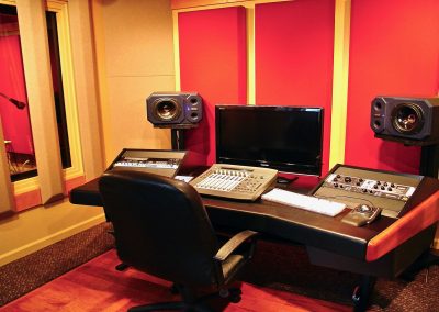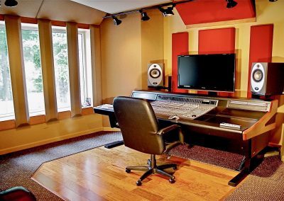 Carl Tatz Design was hired to design the expansion of the Beaird Music Group’s studio in its successful publishing/production facility in Nashville. The centerpiece is Studio C which is a mix room sporting a PhantomFocus System™ Four – Near Field. The room features acoustic louvered sidewalls, custom subwoofer housings and an axial mode absorber rear wall to smooth out this 20Hz room. Studio B is a control room/vocal booth design also with acoustic louvered sidewalls. Various custom modules from Acoustic Sciences Corporation and Auralex were used throughout the project.