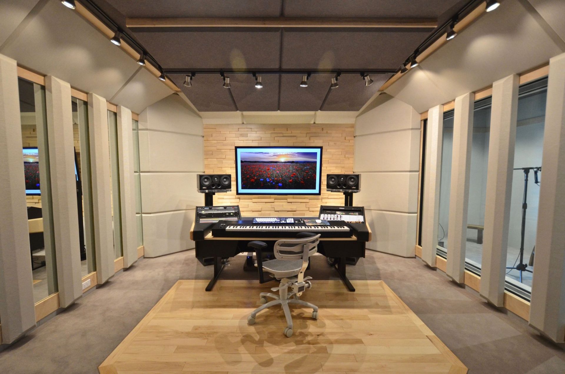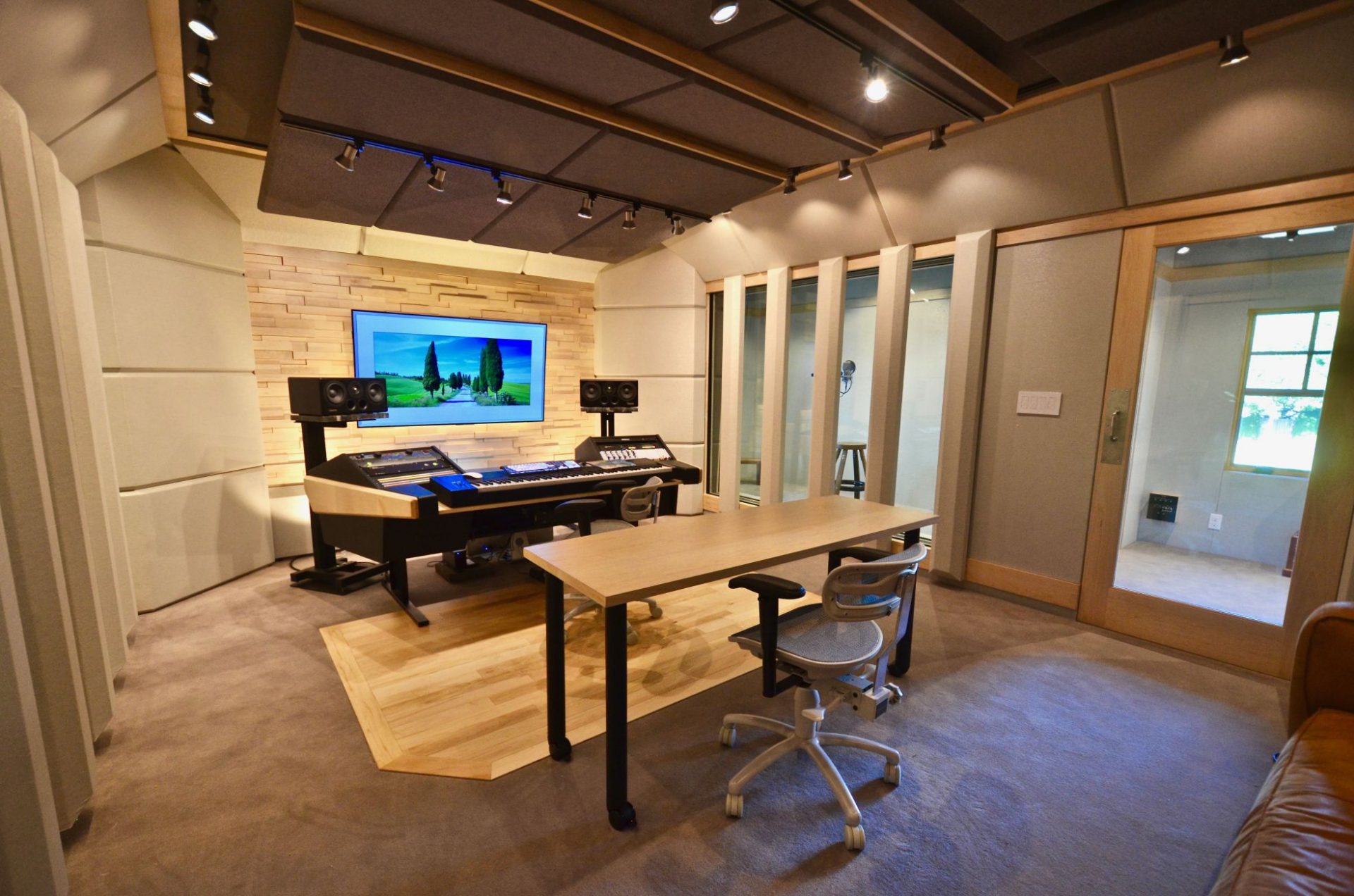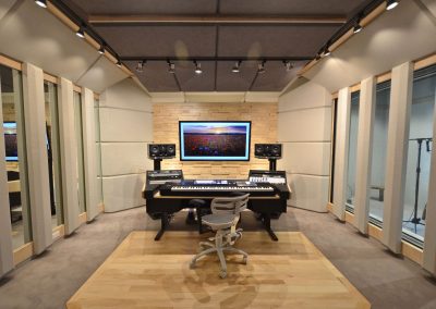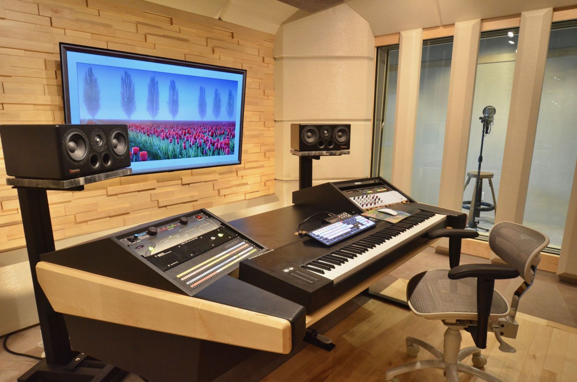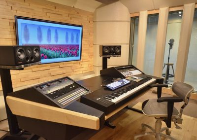 This exquisite custom PhantomFocus Mix Room™ features a solid maple themed esthetic with PhantomFocus PFM UHD-1000 bi-amped Ultra High Definition Monitors, PhantomFocus Monitor Stands by Sound Anchor, custom Argosy Dual 15K Carl Tatz Edition™ Workstation, and two PhantomFocus eChairs™. Carl Tatz Design Signature Series™ modules by Auralex® were used throughout.