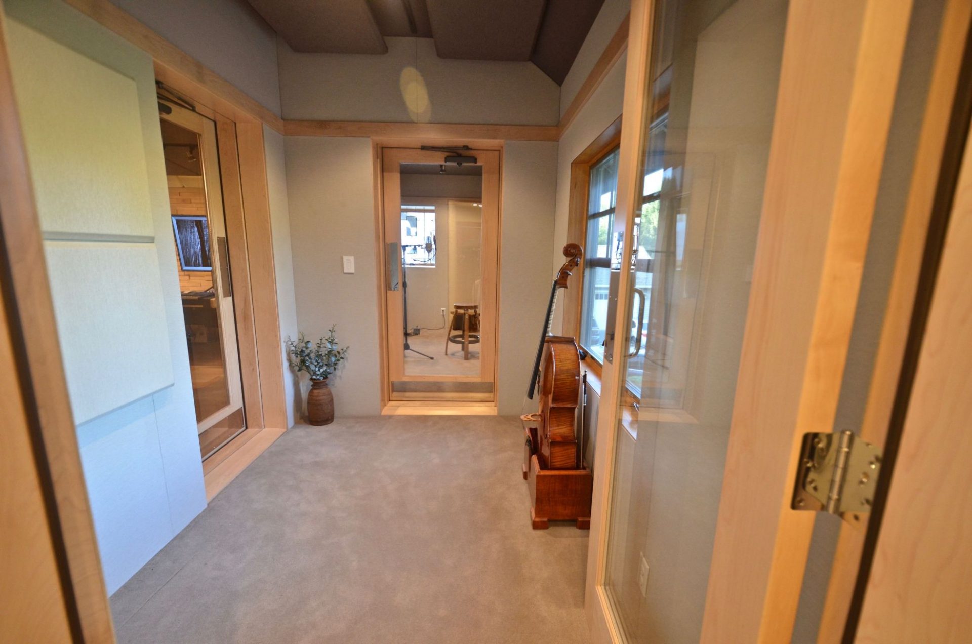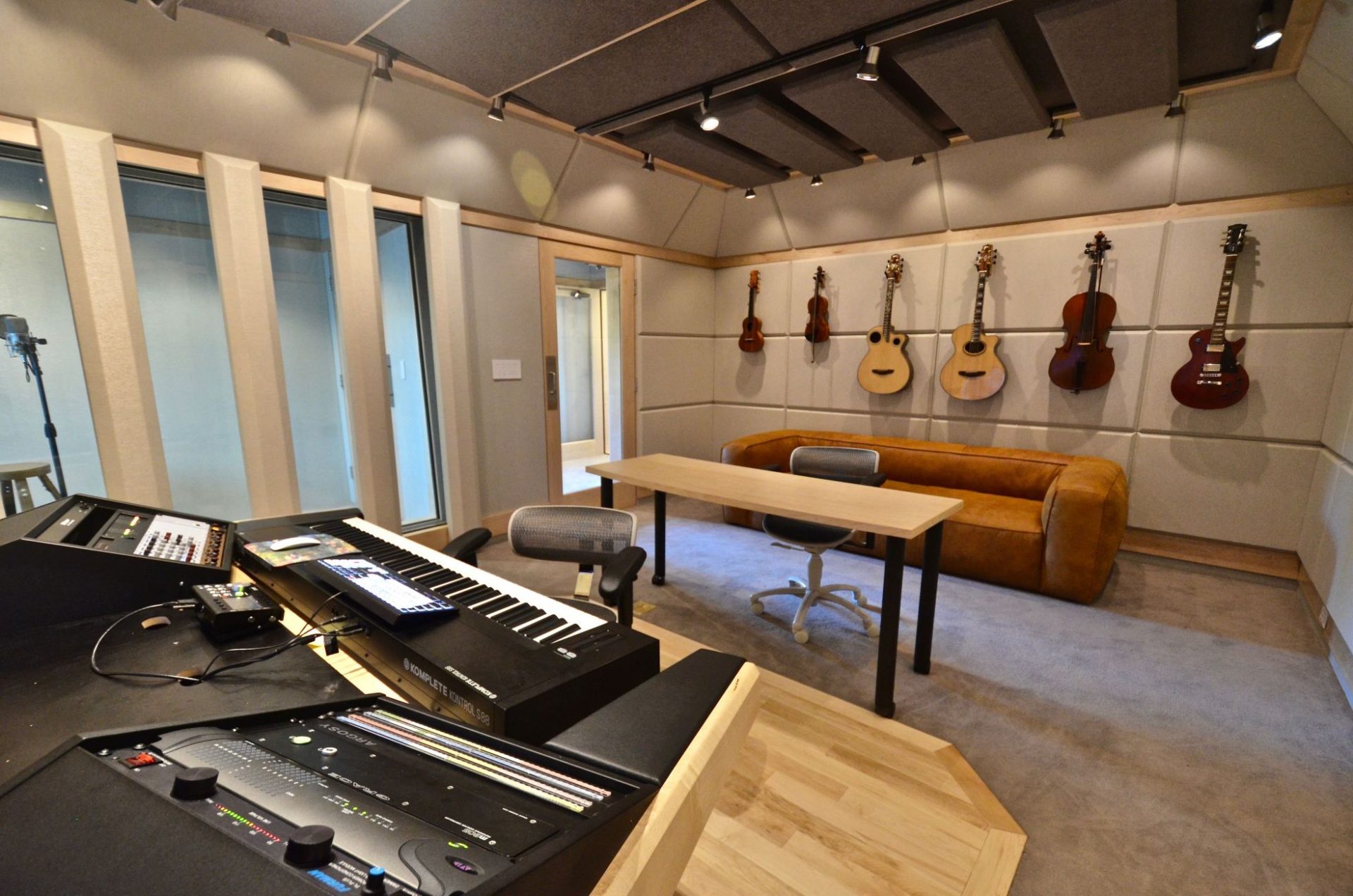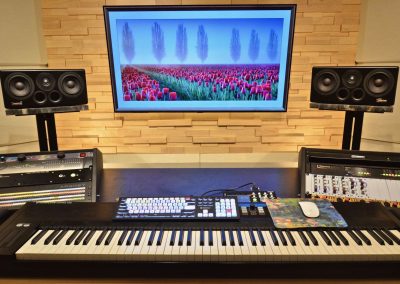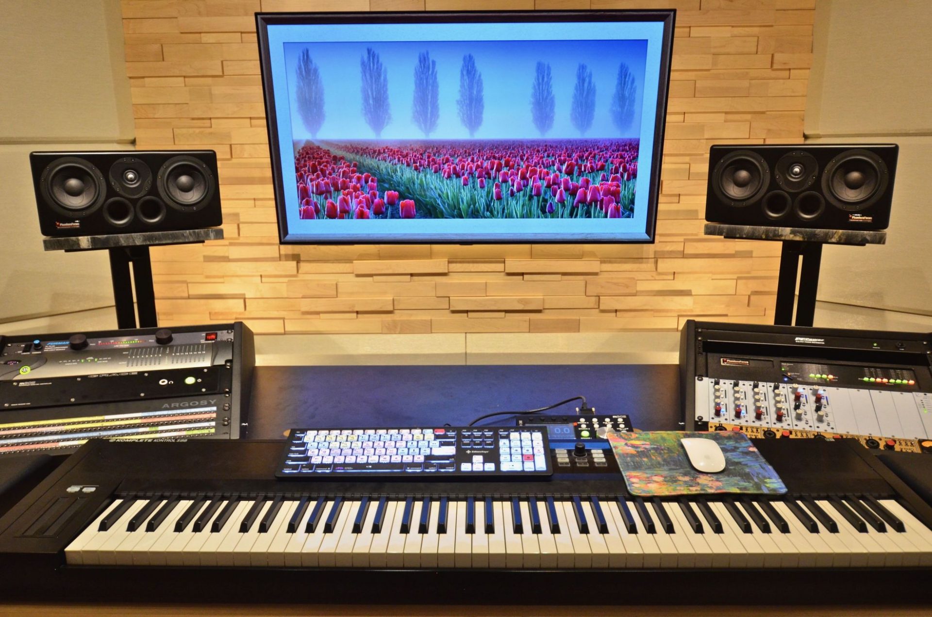 This exquisite custom PhantomFocus Mix Room™ features a solid maple themed esthetic with PhantomFocus PFM UHD-1000 bi-amped Ultra High Definition Monitors, PhantomFocus Monitor Stands by Sound Anchor, custom Argosy Dual 15K Carl Tatz Edition™ Workstation, and two PhantomFocus eChairs™. Carl Tatz Design Signature Series™ modules by Auralex® were used throughout.