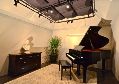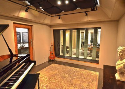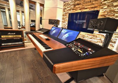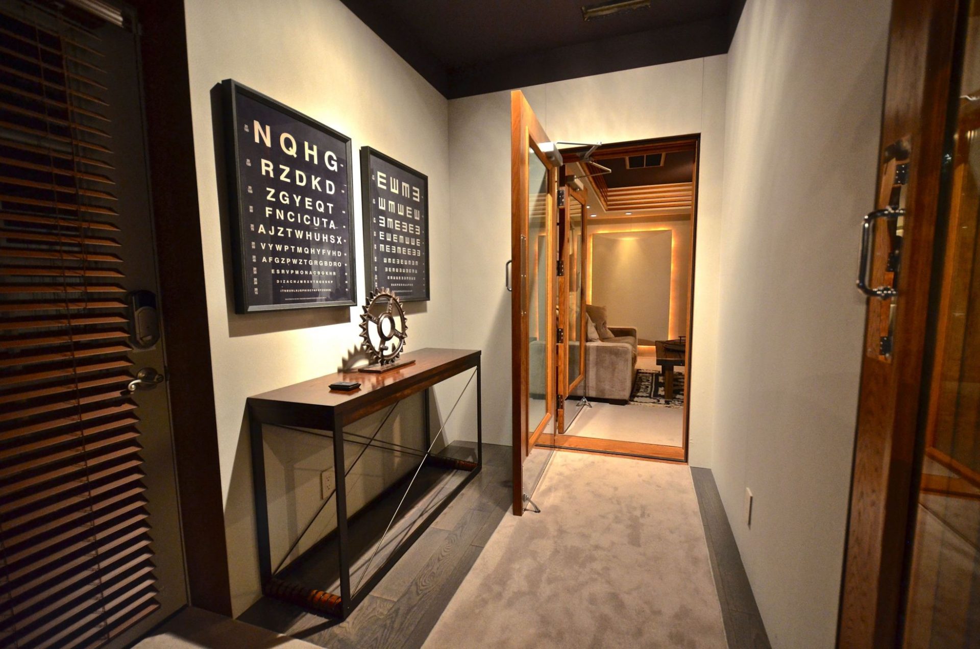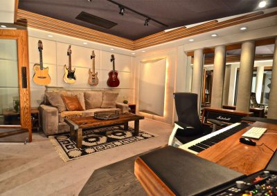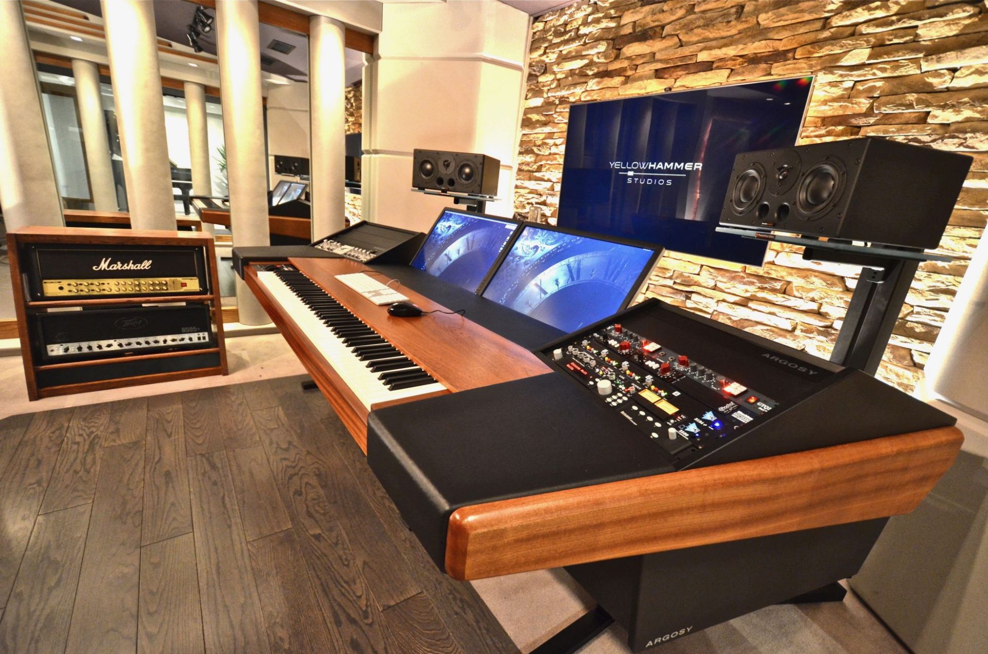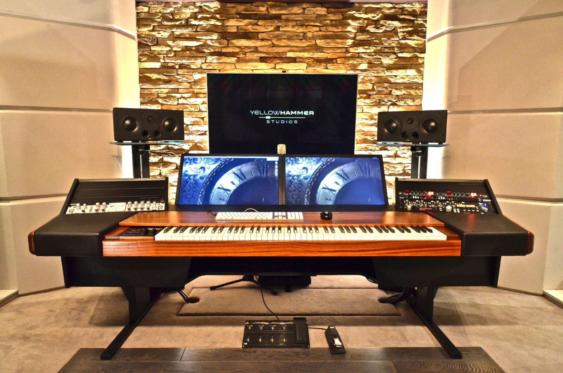 Yellow Hammer is a 630 sq. ft. full tilt custom Carl Tatz Design studio built from the ground up for film composer Justin Ray Miller on the property of his Nashville home. Opened February 2014, it encompasses a CTD MixRoom™, piano booth, restroom, computer closet and hall-of-shame foyer. It features the acclaimed PhantomFocus™ System™ (PFS™) driving a Dynaudio Professional M1 monitor/ Bryston 4B Pro SST2 amplification combo and a custom application of the Carl Tatz Design Signature Series™acoustic modules by Auralex. It also features a custom application of the new Carl Tatz Edition™ Dual 15-KL800 workstation by Argosy Console.